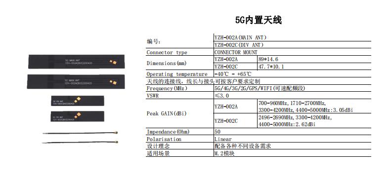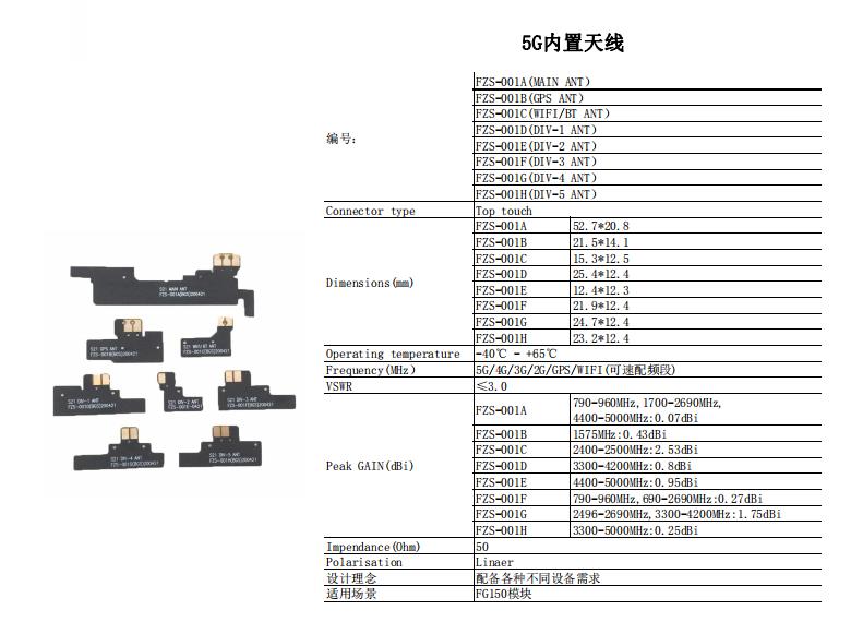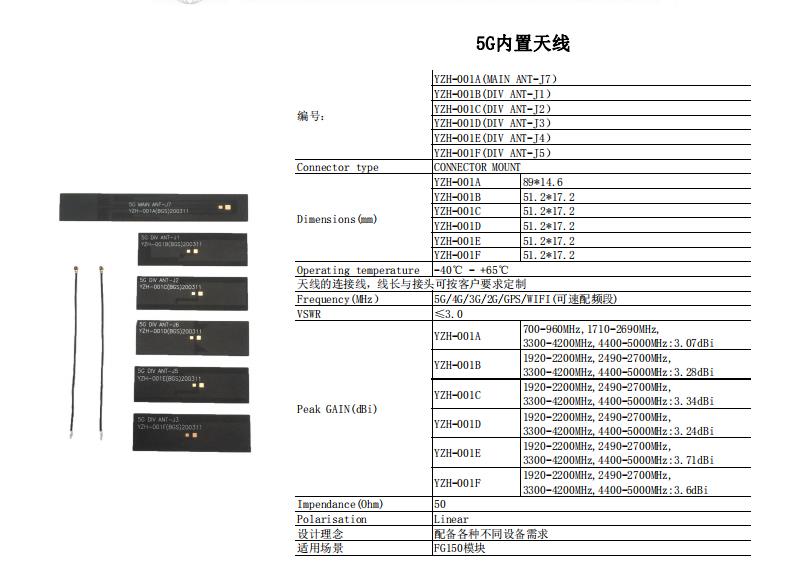 以上是我們的5G內(nèi)置天線產(chǎn)品組合,主要適配于廣和通FG150模塊。隨著技術(shù)的進(jìn)一步升級與變革,毫米波天線(mmWave)將成為5G的大面積鋪設(shè)的支撐點,扛起時代的大趨勢,博格斯通信可以根據(jù)您的具體需求為您研發(fā)其他不同種形式的5G內(nèi)置天線,更好的室內(nèi)覆蓋和更快更一致的數(shù)據(jù)速率,為您的設(shè)備提供更高效更卓越的5G無線通信解決方案!
